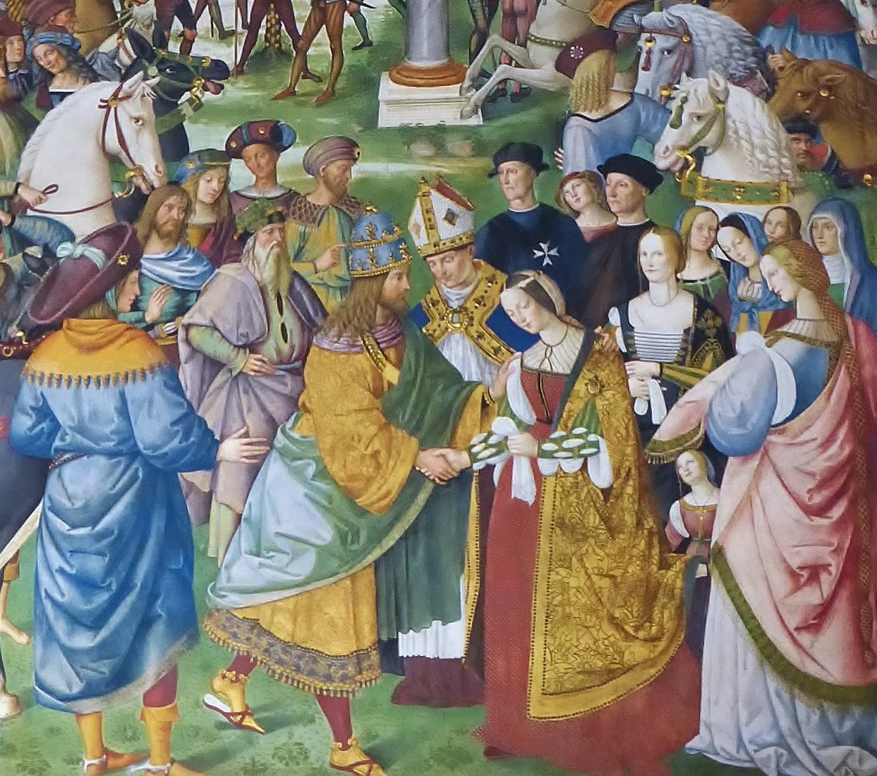 Aeneas, now Pope Pius II, arranges the marriage of Frederick III and Eleanor of Aragon
