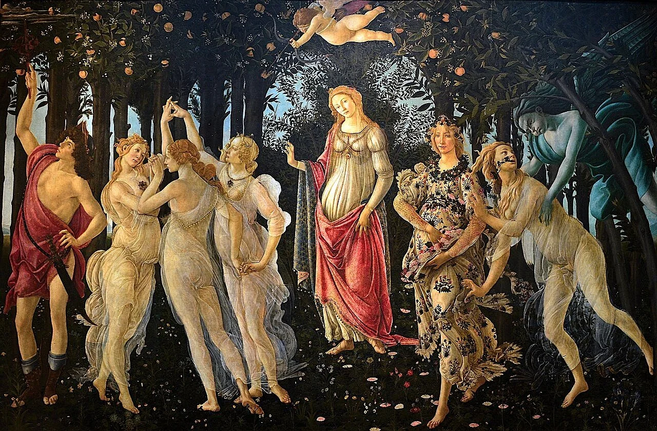 Le Printemps, by Sandro Botticelli, ca. 1482, in the Uffizi Gallery, Florence - public domain image