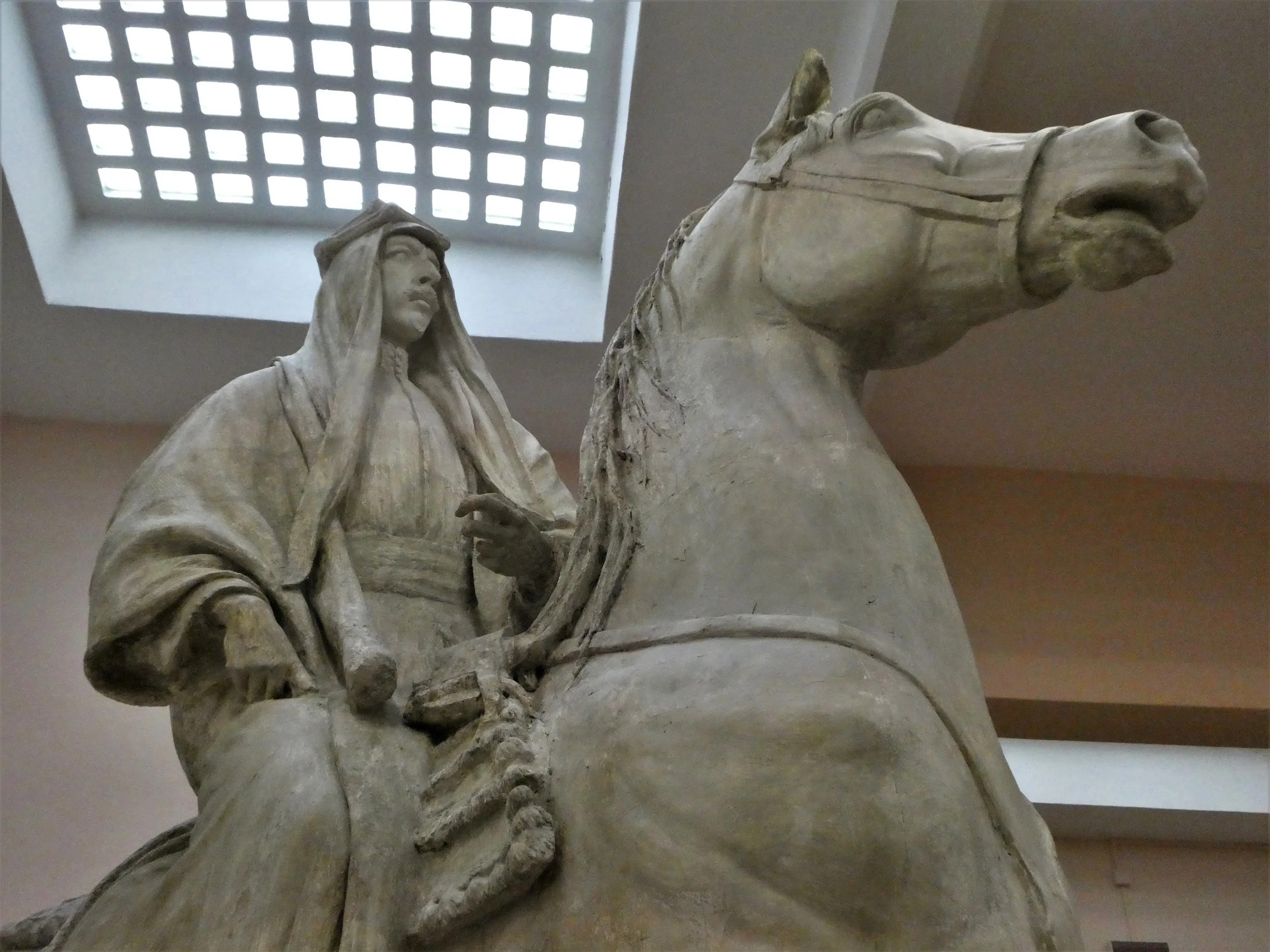 Standing beneath a fourteen-foot-high equestrian statue, I looked up to see the stern face of Faisal I, the first Hashemite king of Iraq, his Bedouin headdress nearly brushing the ceiling. Nearby, and just as imposing, was another mounted rider: Simón Bolívar, the liberator of Venezuela. I saw Grand Duke Nikolai Nikolaevich Romanov astride his horse, his muttonchop sideburns bristling. There were two monuments celebrating Kemal Ataturk, who overthrew the Sultan and founded the Republic of Turkey. Against a wall there was a portrait bust of Czar Nicholas II of Russia. Many of the works were plaster models, patinated to look like bronze, that Canonica made before casting the real sculptures.