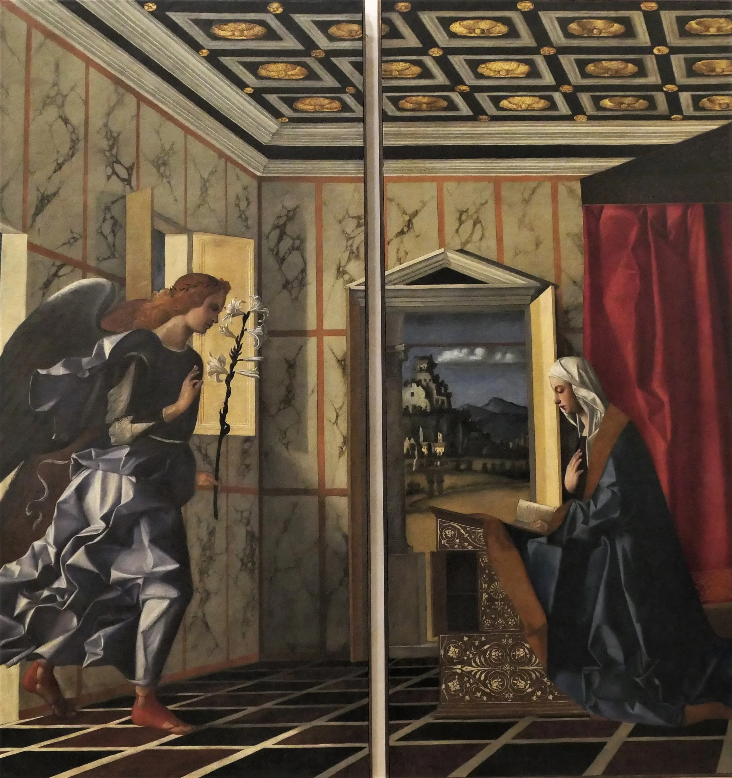 So when he arrived in Venice in 1475 for a stay of less than two years, it seems he changed the direction of Venetian painting in a profound way, because it was at that time that the artists of la Serenissima, led by Giovanni Bellini and Vittore Carpaccio, began to use oils to create the luminous, atmospheric, and colour-filled works that defined the Venetian style forever after.